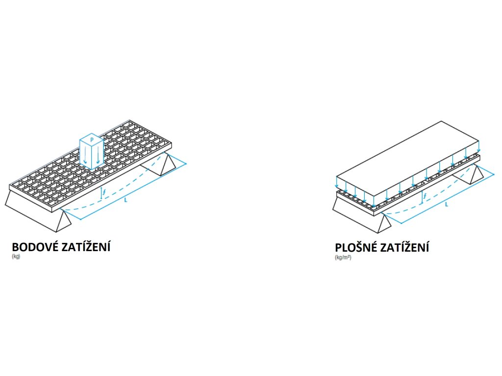 Tieto čísla nám ukazujú celkové plošné zaťaženie a bodové zaťaženie pri 200x200 mm zaťažení chodidlom na roštoch, ktoré sú jednoducho podopreté na oboch koncoch.