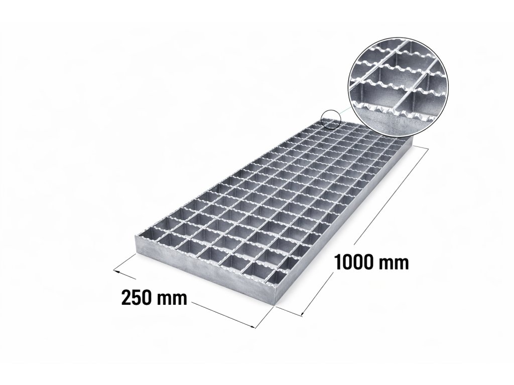 Ocelové rošty Zinkovaný protišmykový rošt XSP 30/2 - 34 x 38 mm - 250 x 1000 mm
