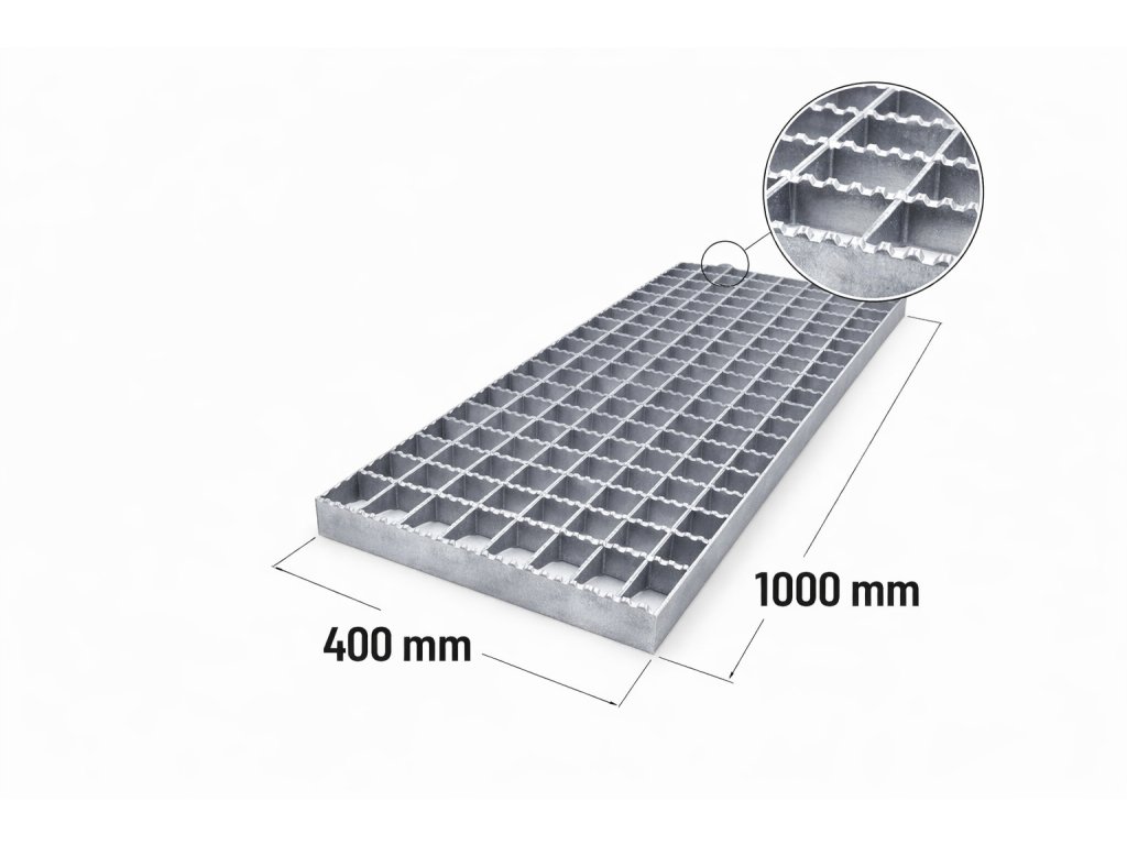 Ocelové rošty Zinkovaný protišmykový rošt XSP 30/2 - 34 x 38 mm - 400 x 1000 mm