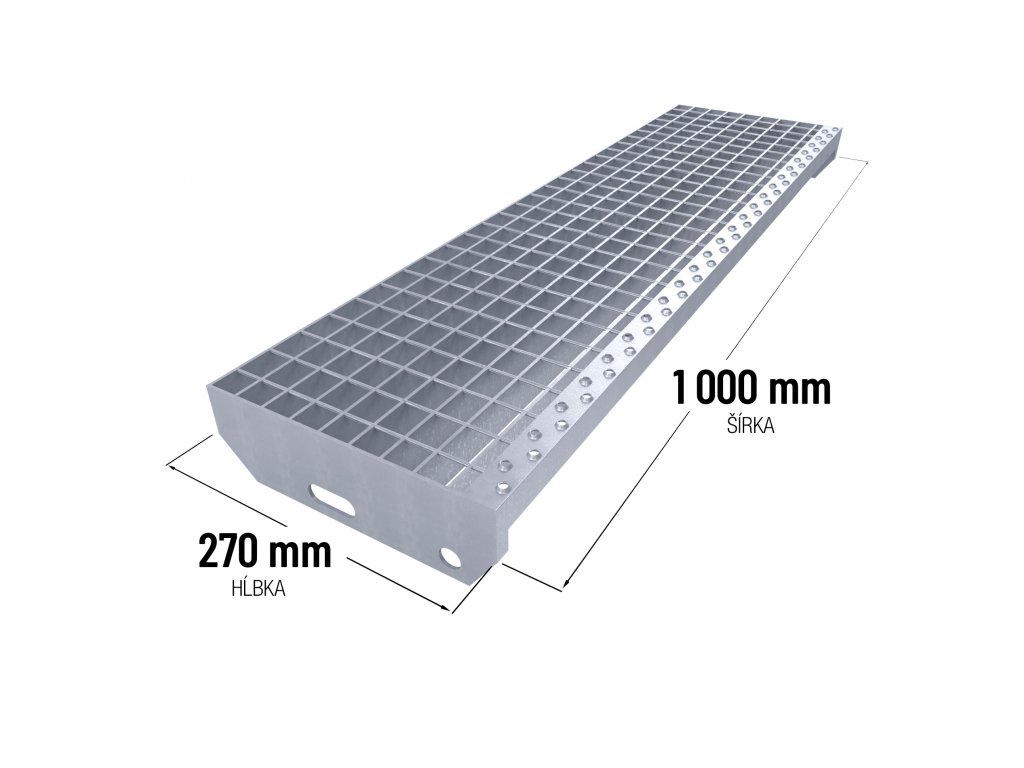 Ocelové schody Zinkovaný schodiskový stupeň SP 30/3 - 34 x 38 mm - 1000 x 270 mm